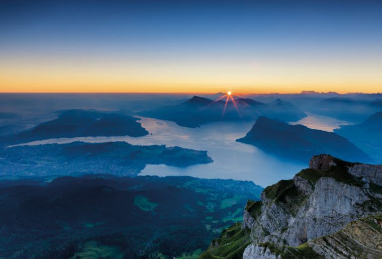 La vue en haut du Pilate est une des plus belles de Suisse : 73 sommets alpins et une cascade de lacs ! © STST-STTP Andreas Gerth