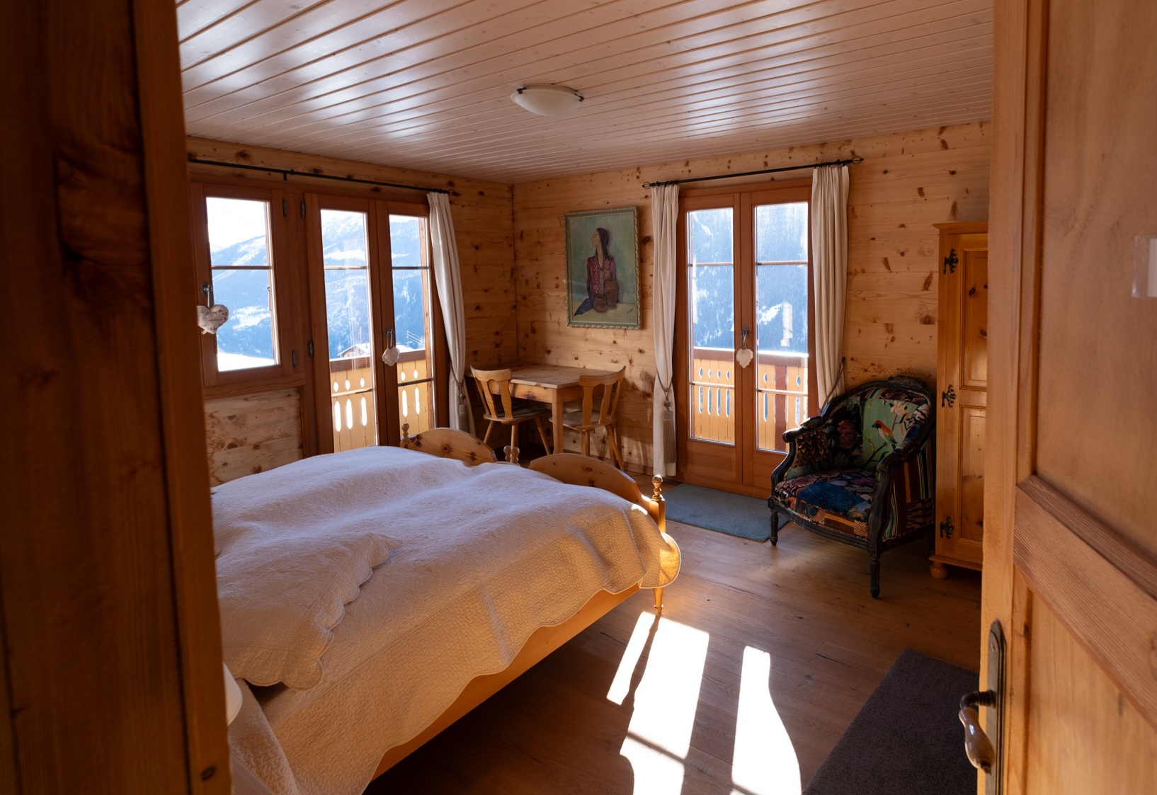 Oubliez l'hôtel ! Vous vivrez au coeur de ce village de 480 habitants qui s'accroche aux pentes de la vallée de Conches. Le grand chalet en rondins pluricentenaire a gardé son fourneau en pierre ollaire et ses plafonds tandis que dans les trois chambres, les lits et le fauteuil à bascule traditionnel ont été fabriqués en mélèze local par un menuisier de la région. Le poort a poort (vous connaissez déjà trois mots du dialecte local !) donne sur lapalce du village et son restaurant constitue le lieu de rencontre des habitants.