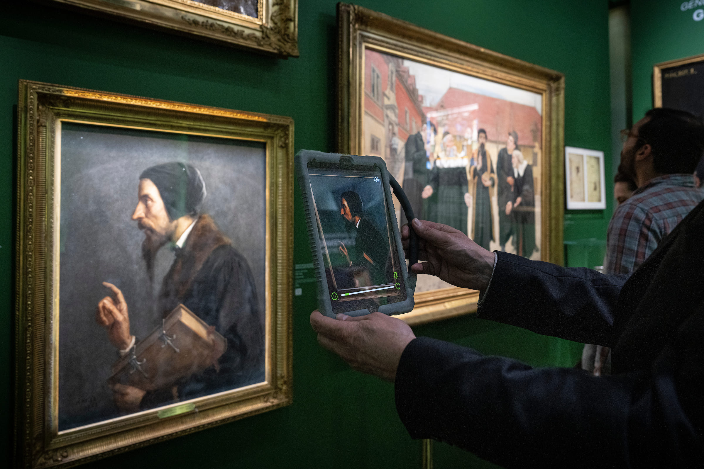 À Genève, les Réformateurs sortent du cadre ! Au Musée international de la Réforme, les grandes figures du passé reprennent vie sous vos yeux grâce à la magie de la réalité augmentée. Armé d'une tablette empruntée gratuitement à l'accueil, partez à la rencontre de 15 oeuvres qui s'animent, parlent et livrent leurs secrets les mieux gardés. Avec l'application ARTVERSE, la visite devient une grande chasse au savoir version high-tech, avec un peu d'Histoire et de la science bien dosée. Même Calvin aurait de quoi sourire !